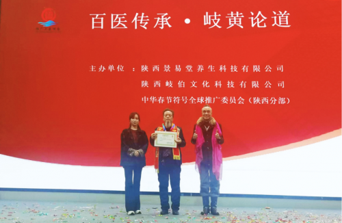 活动尾声,中华春节符号全球推广委员会陕西分部主任罗齐齐女士为郭建平教授颁发“中华传统文化推广大使”证书及奖杯,表彰其推动中医药文化传承的卓越贡献。